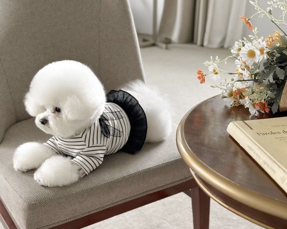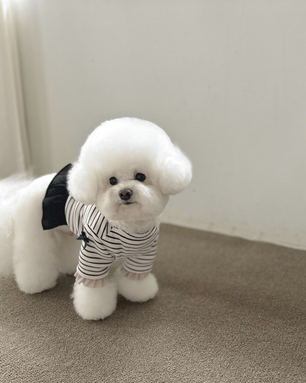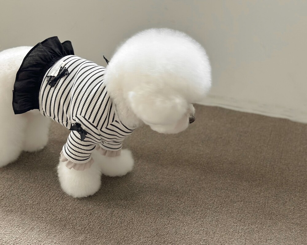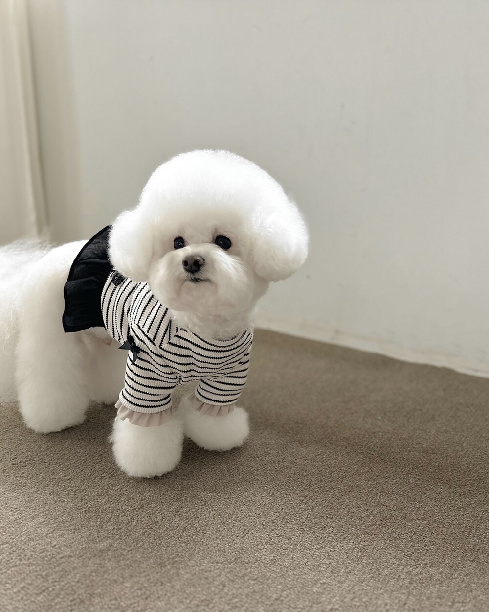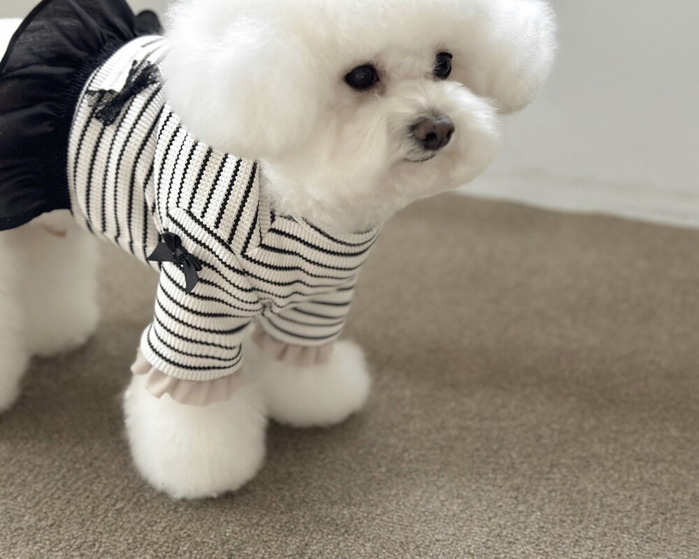 리본만 스몰 미듐 라지 3곳의 포인트, 밑단과 소매에도 프릴까지
